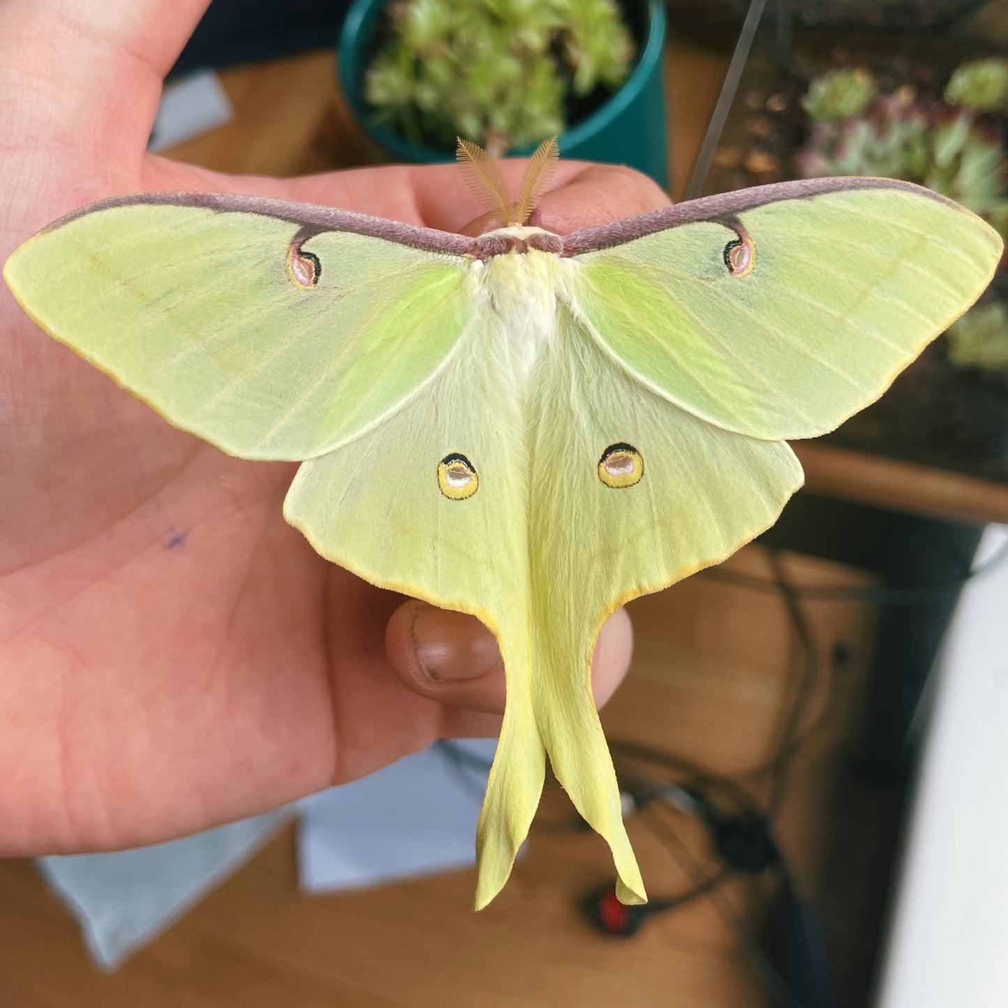 Actias luna, commonly known as the Luna moth or American Moon moth, is a large, striking moth in the family Saturniidae. Native to North America, it is one of the most recognizable and iconic moths due to its ethereal beauty and distinctive features. Its range extends from Canada down to parts of Mexico, thriving in deciduous forests.