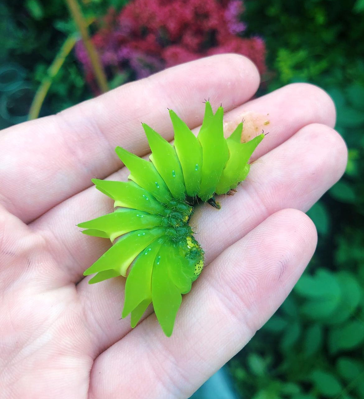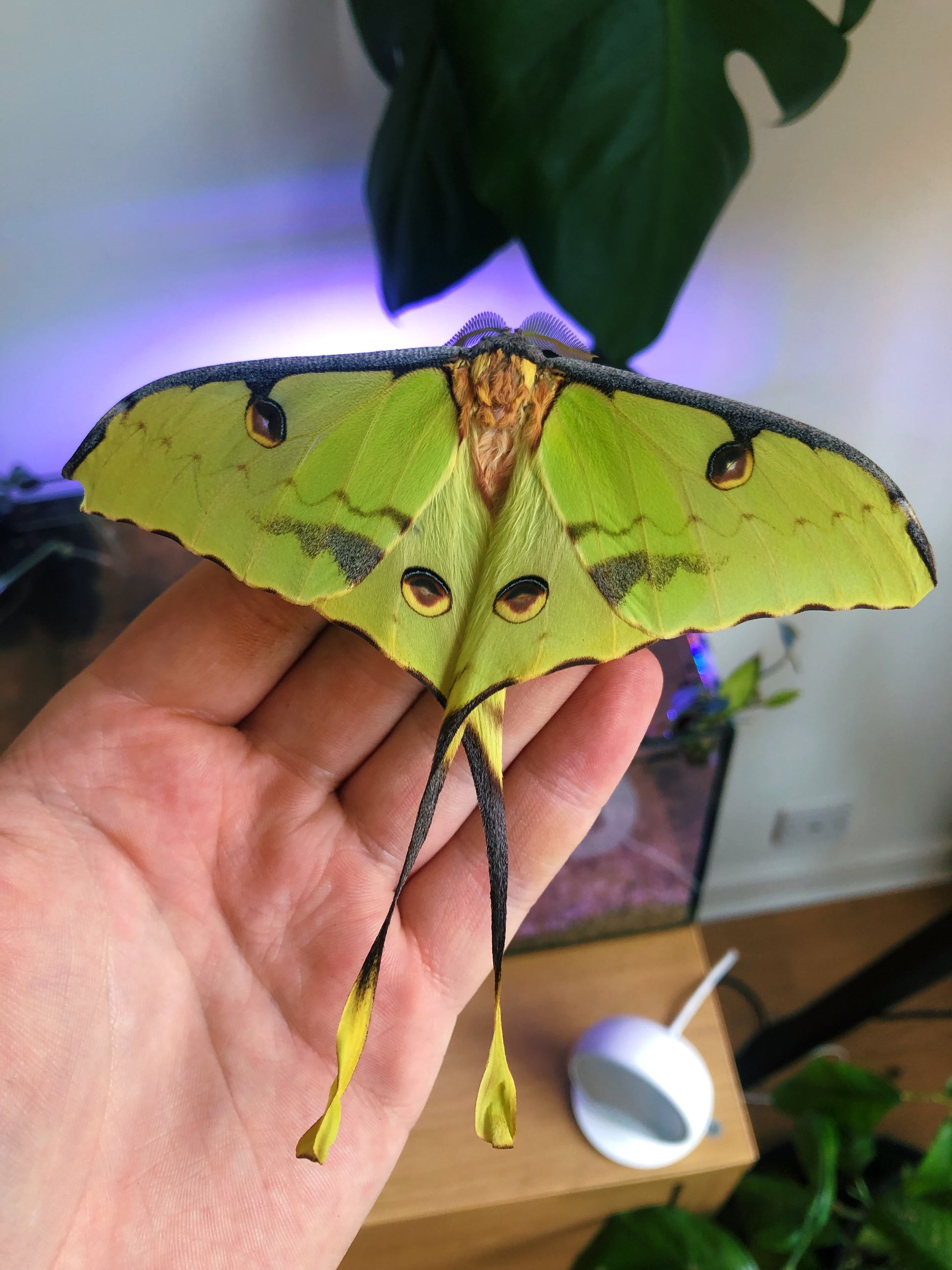 The caterpillars of this species are some of the most spectacular we've seen - they feed on various host plants, several of which are easily used for rearing in captivity. Adults, like almosy all silk moths, do not have functional mouthparts and rely on energy stored from their larval stage. Their primary purpose as adults is reproduction, and their lifespan is typically brief, lasting only a few days to a week, though females can live for up to three weeks by remaining stationary whilst they wait for a mate to find them.