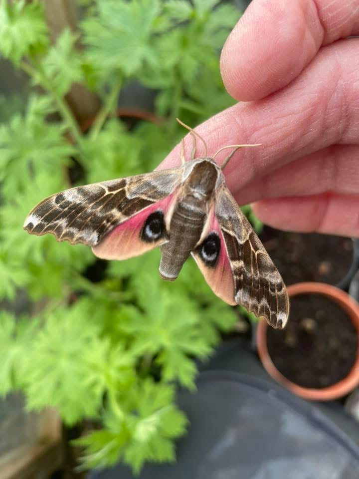 Smerinthus cerisyi, the One-eyed Sphinx, is a species of hawk-moth found in North America, in regions of the United States and Canada. It is known for its distinctive appearance, characterized by a prominent eye-like spot on each hindwing. Like other members of the Sphingidae family, it has a streamlined body and long, narrow wings, which aid in its agile flight. Host plants include Willows and Poplars. The caterpillars are typically green with diagonal white lines along their sides and a prominent horn-like structure at the rear. Rearing is essentially the same as for our own Eyed Hawk-moths!