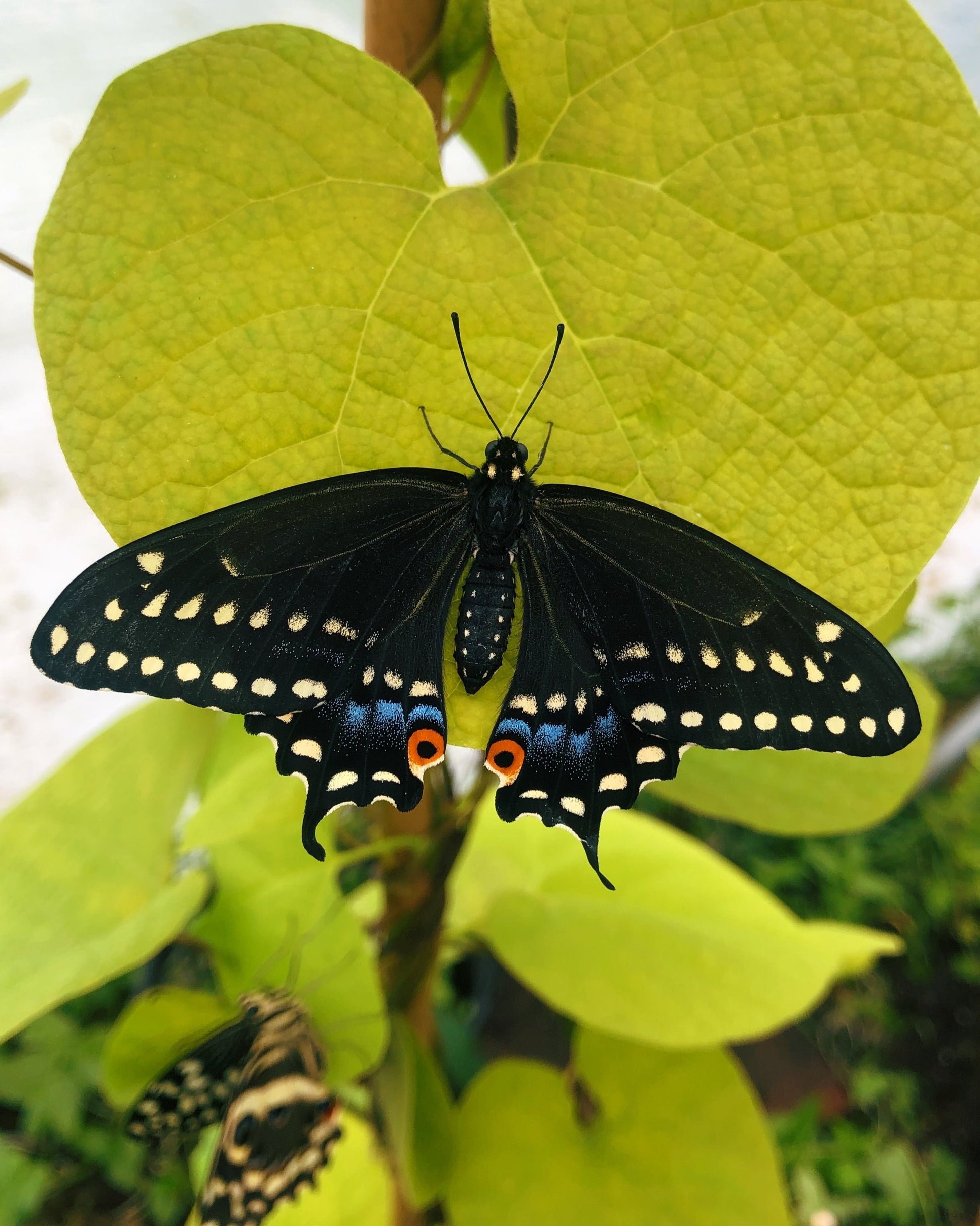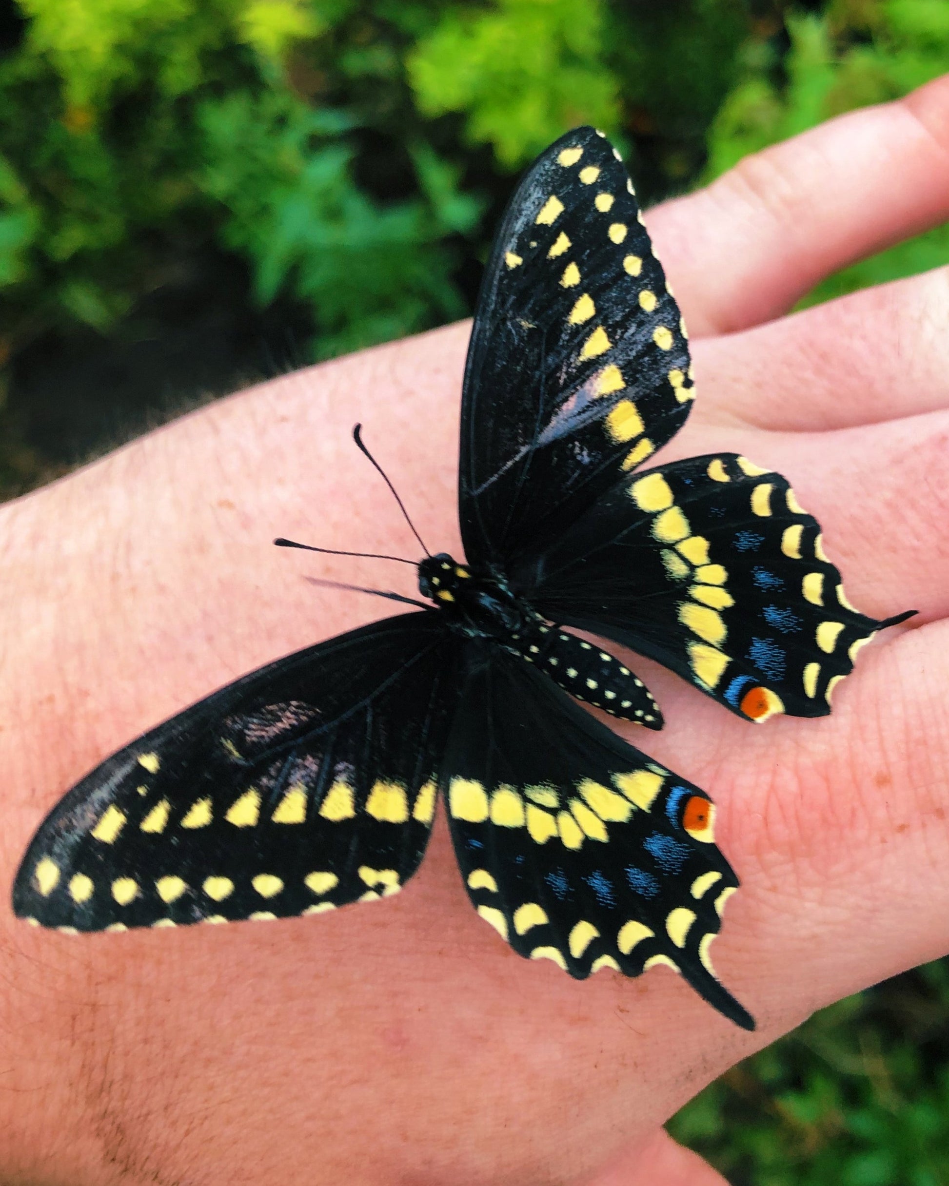 This butterfly is a common sight in open fields, gardens, and meadows, particularly where its host plants, such as parsley, dill, fennel, and carrot, grow. Females lay their eggs on these plants, providing a food source for the caterpillars, which are green with black and yellow stripes. The larvae are also known as "parsley worms" because of their feeding habits.