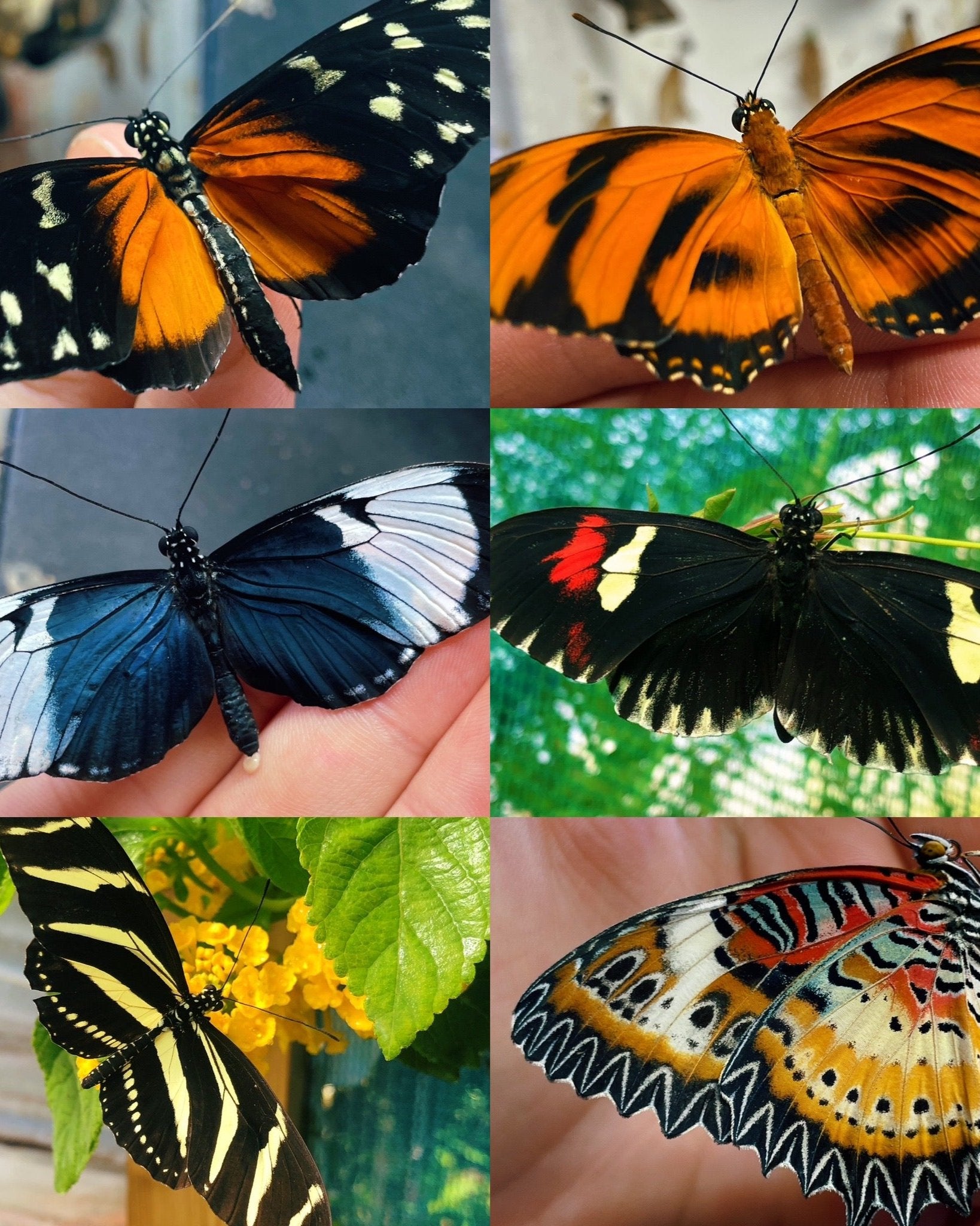 Species may include: Postman Butterfly (Heliconius melpomene); Zebra Longwing (Heliconius charithonia); Leopard Lacewing (Cethosia cyane); Red Flame (Dryas julia); Gulf Fritillary (Agraulis vanillae); Juno Longwing (Dione juno).